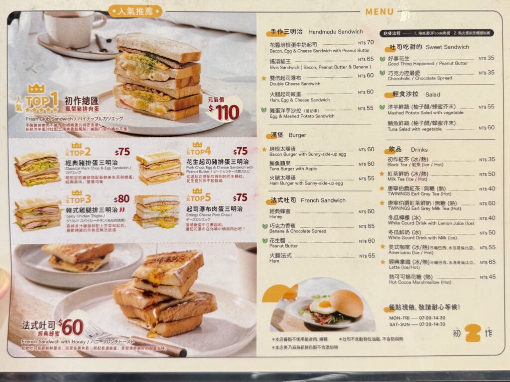 注文したのはTOP2のカツエッグサンド。しっかり厚みのある豚肉は食べ応え抜群!さらにたっぷりの卵と新鮮な野菜が全体のバランスを調和してくれます。そしてある意味主役のパンが、甘さと香ばしさで最高に美味です。「わざわざ台湾に行ってまで、サンドイッチ食べる?」と思うかもですが、むしろ台湾ローカルの新定番として、朝サンドイッチをぜひおすすめします!各店さまざまな工夫があって、お店ごとの味わいがあります。今回ご紹介の初作早餐ももちろんおすすめの良店です。みなさまもぜひチャレンジしてみてください!