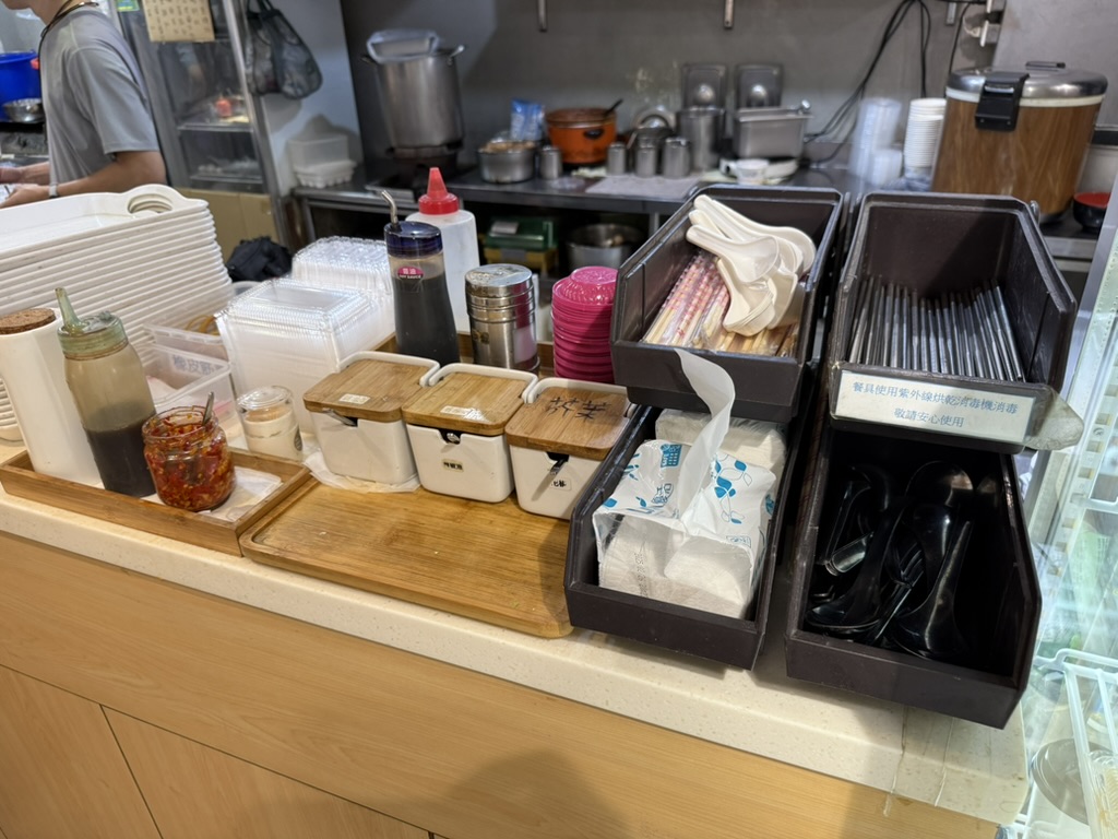 注文を済ませたついでに必要なものを取ります。ここの辣醬はとても美味なので辛いものが得意なかたはぜひ試してください。でも、台湾の辣醬は少しずつがセオリーです!
