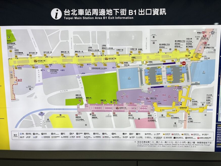 ブルーライン板南線とレッドライン淡水信義線が交差する台北駅。新幹線や特急、在来線、長距離バスなどが乗り入れる、まさに台北の中心駅です。